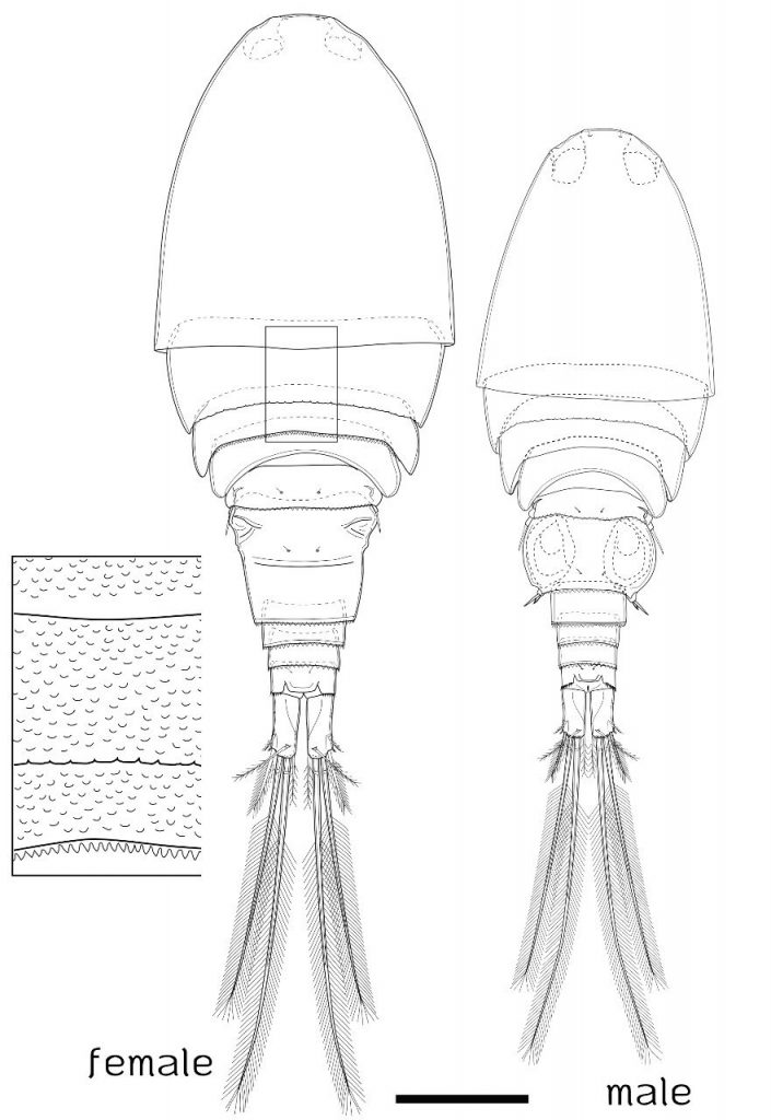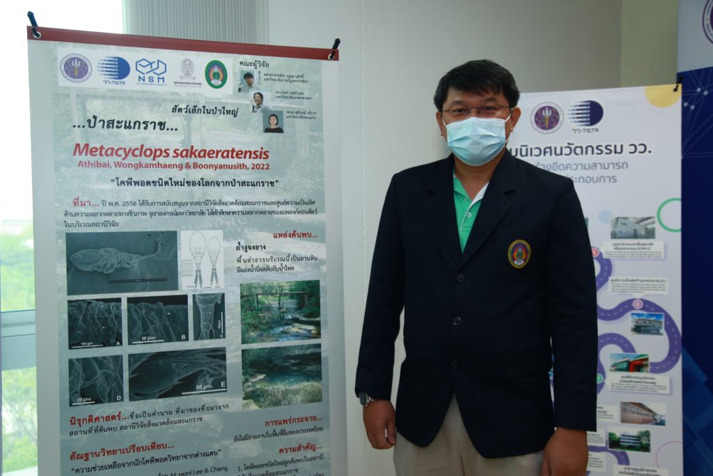 โคพีพอด (Copepods) ค้นพบโดย ผศ.ดร.ชายฉัตร บุญญานุสิทธิ์ คณะวิทยาศาสตร์และเทคโนโลยี มหาวิทยาลัยราชภัฏนครราชสีมา ได้รับการสนับสนุนจากสถานีวิจัยสิ่งแวดล้อมสะแกราชและศูนย์ความเป็นเลิศด้านความหลากหลายทางชีวภาพ จุฬาลงกรณ์มหาวิทยาลัย ในโครงการศึกษาความหลากหลายของแพลงก์ตอนสัตว์ ค้นพบบริเวณถ้ำงูจงอาง สถานีวิจัยสิ่งแวดล้อมสะแกราช เป็นพื้นลำธารที่เป็นลานหิน มีแอ่งน้ำนิ่งสลับกับน้ำไหล มีชื่อวิทยาศาสตร์ว่า Metacyclops sakaeratensis Athibai,Wongkamhaeng & Boonyanusith, 2022 มีลักษณะเด่นดังนี้ 1. ปลายของขาว่ายน้ำคู่ที่ 4 มี spine 1 อัน 2. ด้านข้างของ caudal ramus มีหนาม และ 3. ปล้องสืบพันธุ์มีร่องตามขวางทางด้านหลัง ทั้งนี้ ชนิดใหม่ของโลกจากสะแกราช มีลักษณะคล้ายกับเครือญาติจากกัมพูชา แต่ชนิดจากกัมพูชาไม่มีลักษณะในข้อ 3. คือร่องตามขวางทางด้านหลังของปล้องสืบพันธุ์
