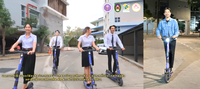 มหาวิทยาลัยราชภัฏนครราชสีมา ส่งเสริมให้มีการใช้งานสกู๊ตเตอร์หรือรถมอเตอร์ไซค์ขนาดเล็ก หรือยานพาหนะไฟฟ้า โดยเปิดโอกาสให้บริษัทเอกชน คือ RideBeam มาให้บริการ เพื่อจะเป็นส่วนหนึ่งในการผลักดันการขับเคลื่อนการพัฒนาเมืองคาร์บอนต่ำและบริการสาธารณะของเมืองการพัฒนาอย่างยั่งยืน 📍 โดยมีจุดให้บริการ จำนวน 13 จุด ดังนี้
