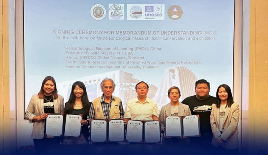 2. ความร่วมมือระหว่างพิพิธภัณฑ์ฟูกุอิ มหาวิทยาลัยฟูกุอิ ประเทศญี่ปุ่น และ สถาบันันวิจัยไม้กลายเป็นหินฯ มหาวิทยาลัยราชภัฏนครราชสีมา โดยมีโครงการขุดสำรวจไดโนเสาร์ไทย-ญี่ปุ่น ประจำปี วันที่ 4-28 พฤศจิกายน 2566 เพื่อ สำรวจ ศึกษา วิจัยและการอนุรักษ์ทรัพยากรและซากดึกดำบรรพ์ในท้องถิ่น ซึ่งเป็นความร่วมมือเริ่มต้นมาตั้งแต่ปี พ.ศ.2550-ปัจจุบัน