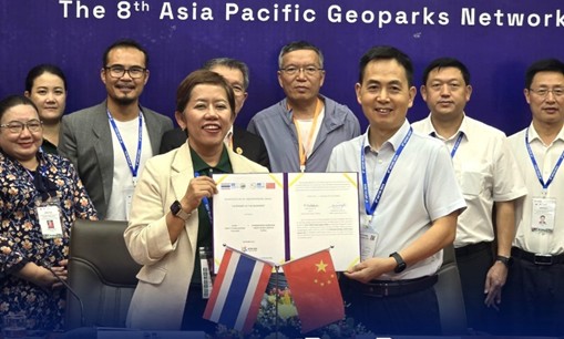 4. กิจกรรมลงนามความร่วมมือ (MOU) ร่วมกับอุทยานธรณีโลกยูเนสโกกวางหวู่ซาน-นูสุ่ยเหอ ประเทศจีน (GUANGWUSHAN-NUOSHUIHE UNESCO GLOBAL GEOPARK CHINA) โดยมีการจัดกิจกรรมเมื่อวันที่ 13 กันยายน 2567 ได้ลงนามความร่วมมือ (MOU) ร่วมกับอุทยานธรณีโลกยูเนสโกกวางหวู่ซาน-นูสุ่ยเหอ ประเทศจีน (GUANGWUSHAN-NUOSHUIHE UNESCO GLOBAL GEOPARK CHINA) เพื่อแลกเปลี่ยนความเชี่ยวชาญและความรู้ความชำนาญ ด้านการอนุรักษ์ การจัดการ การท่องเที่ยวเชิงธรณีวิทยา การพัฒนาอย่างยั่งยืน