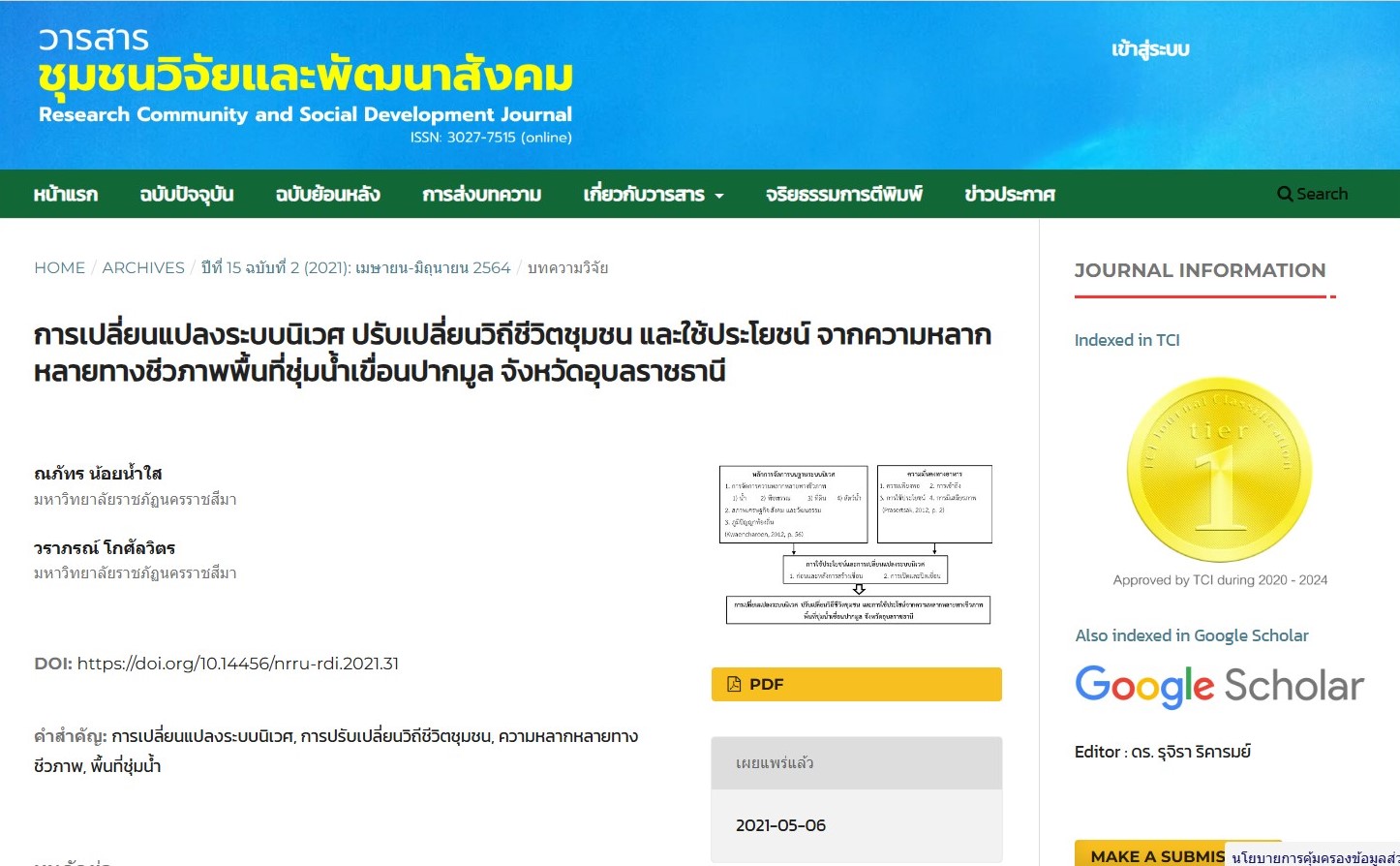 7. การเปลี่ยนแปลงระบบนิเวศ ปรับเปลี่ยนวิถีชีวิตชุมชน และใช้ประโยชน์ จากความหลากหลายทางชีวภาพพื้นที่ชุ่มน้ำเขื่อนปากมูล จังหวัดอุบลราชธานี