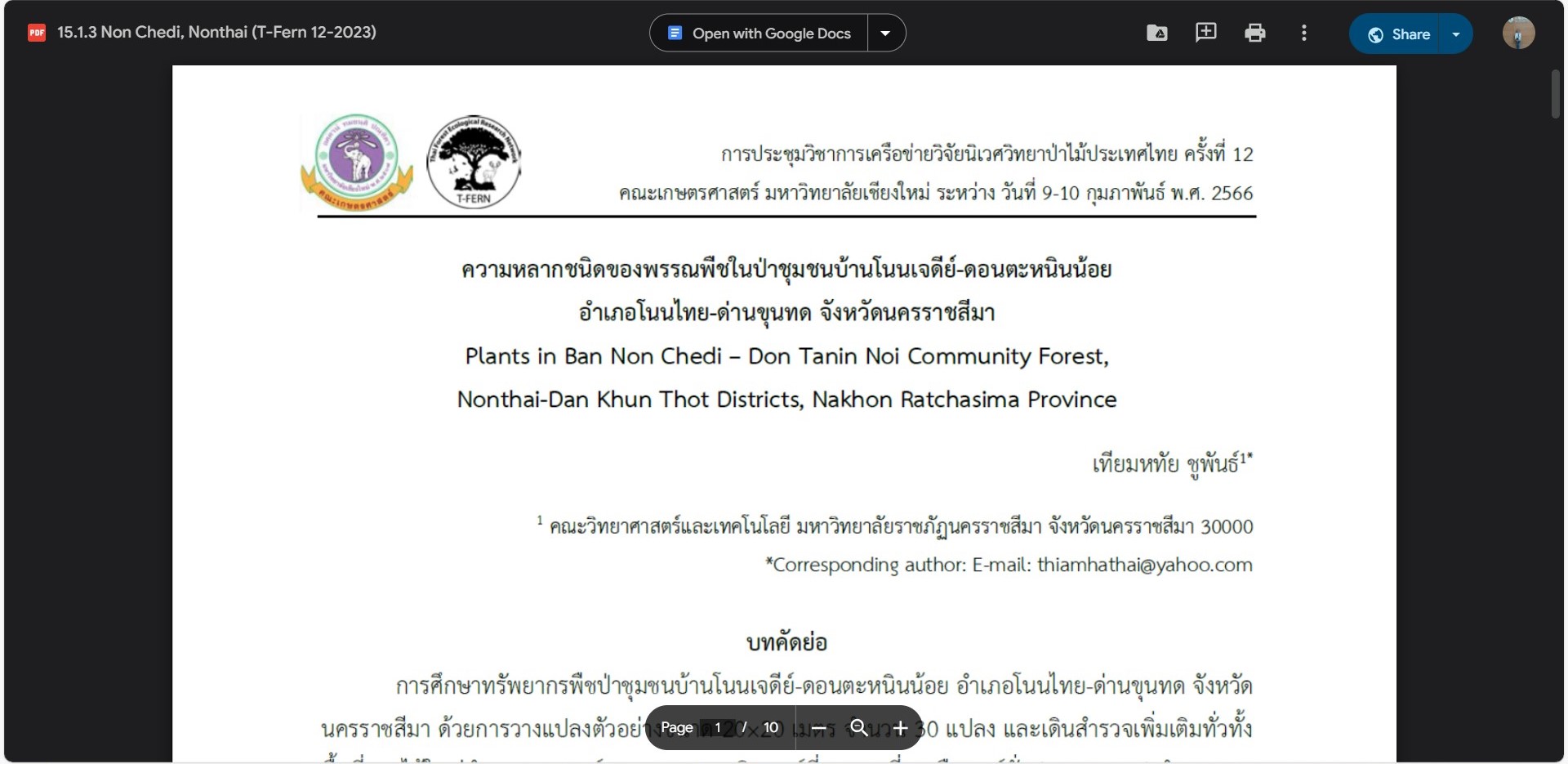 3. ความหลากชนิดของพรรณพืชในป่าชุมชนบ้านโนนเจดีย์-ดอนตะหนินน้อย อำเภอโนนไทย-ด่านขุนทด จังหวัดนครราชสีมา